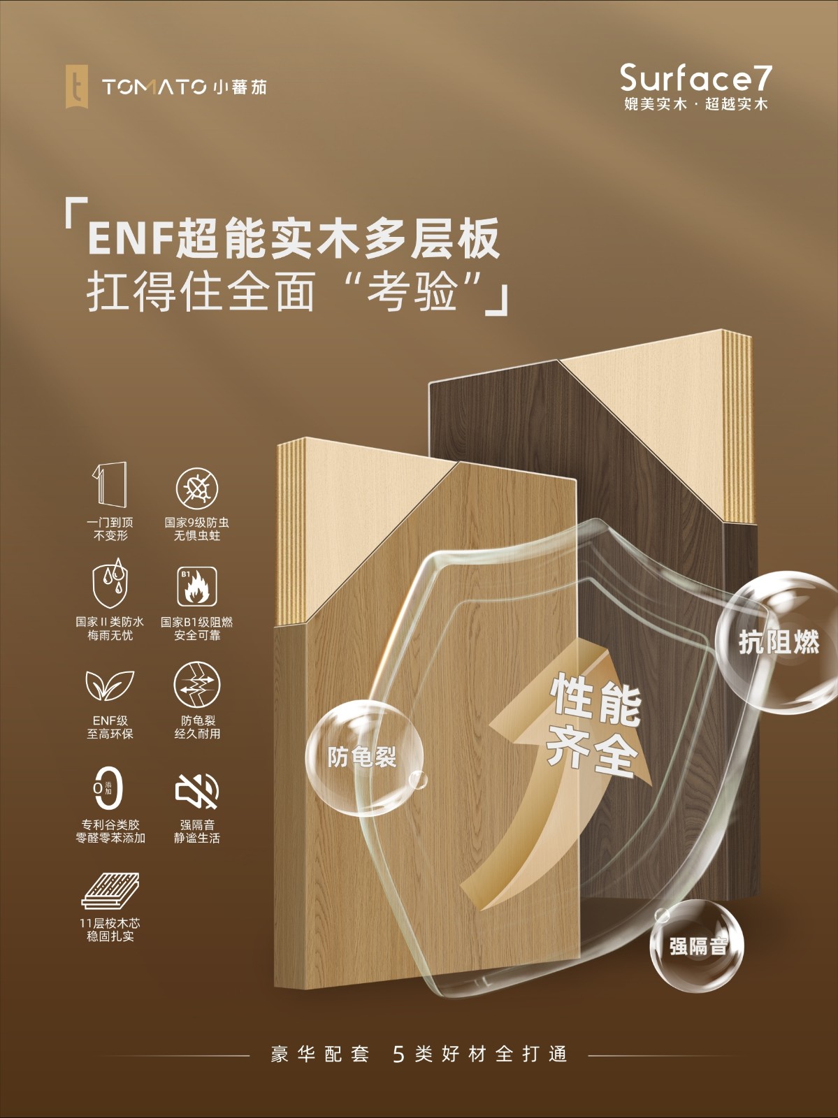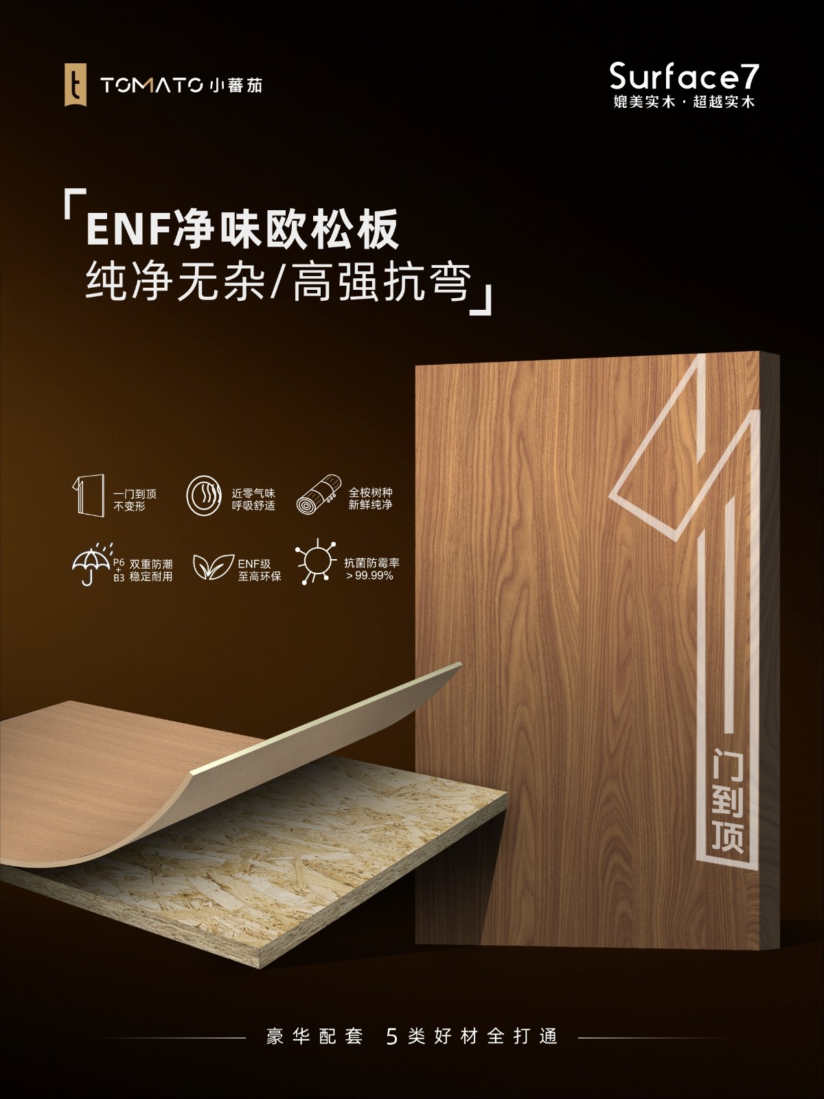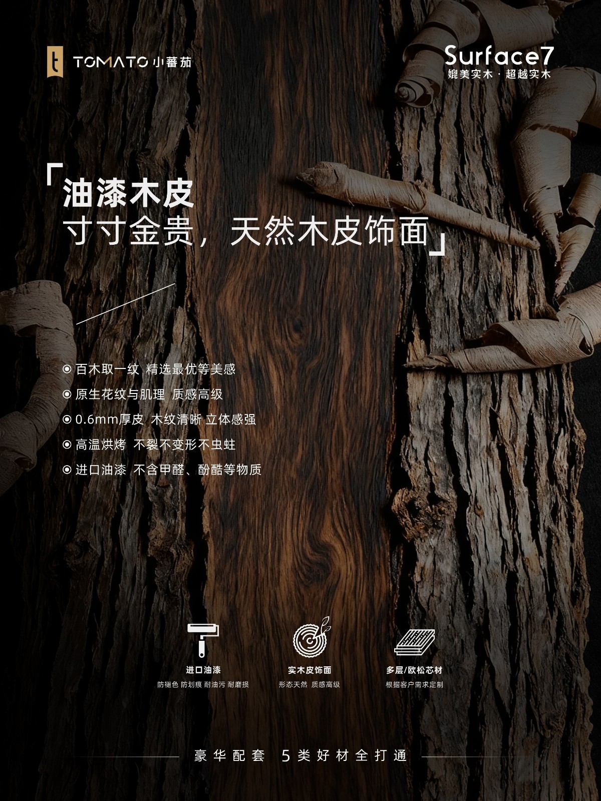 【豪华配套】5类好材全打通!! 一站配齐,拥抱优势,解决高端苛求! ❶ 油漆木皮 ❷ 进口桦木原木板 ❸ 超能实木多层板 ❹ 绿芯实木多层板 ➎ 净味欧松板