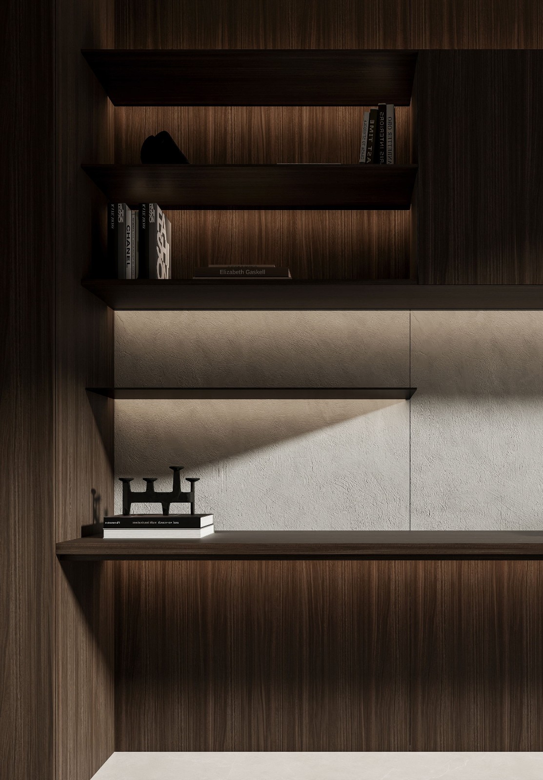 蓝山·烟栗,烟熏尤加利以天然原木为蓝本,通讨刨切等多重工艺,加工成厚度均匀的木皮,使用烟熏工艺处理后,色彩沉稳,个性时尚,错络的木质纹理和独特的色彩,让人沉醉于浪漫的艺术风情里。