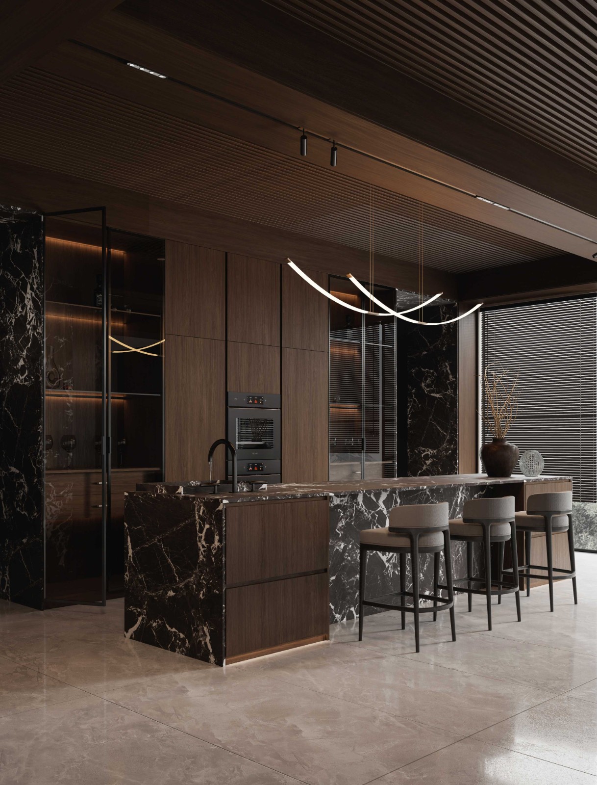 璞·系列,是柚木的纹理。由清晰流畅的四分之三山纹+半山纹+直纹的弦切和径切设计拼接而成,呈现出感性与秩序的完美平衡。