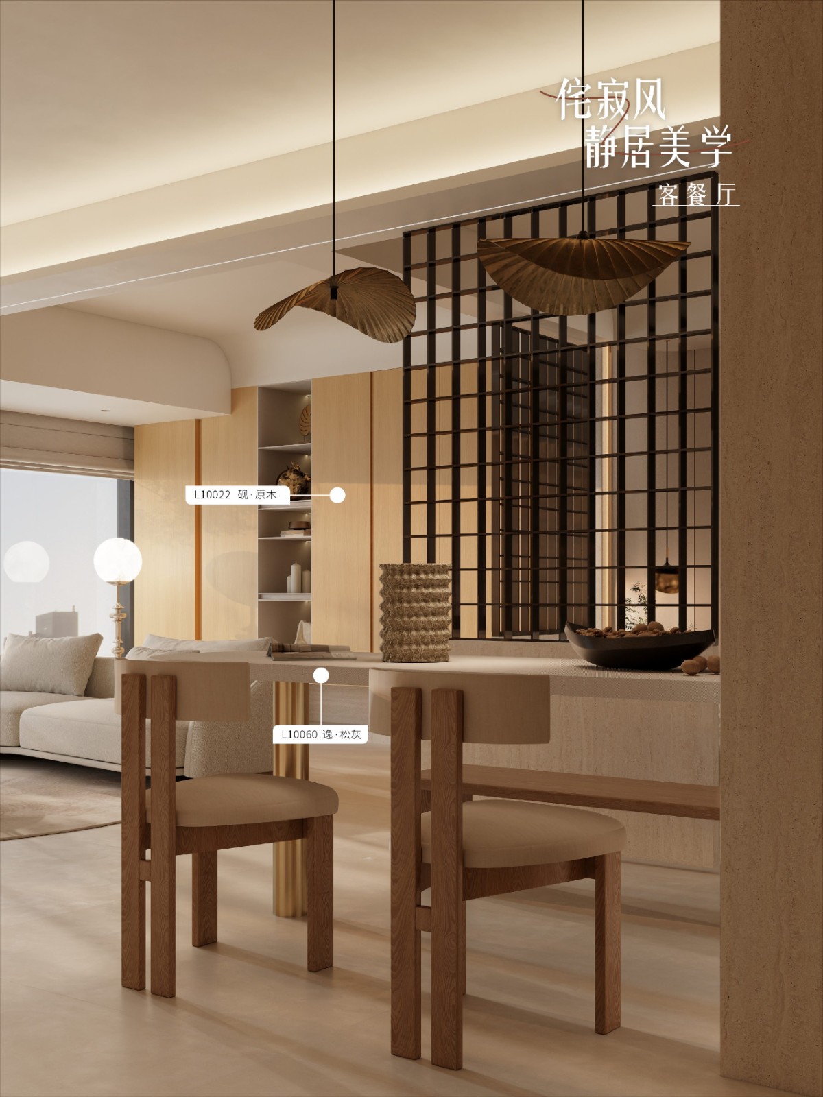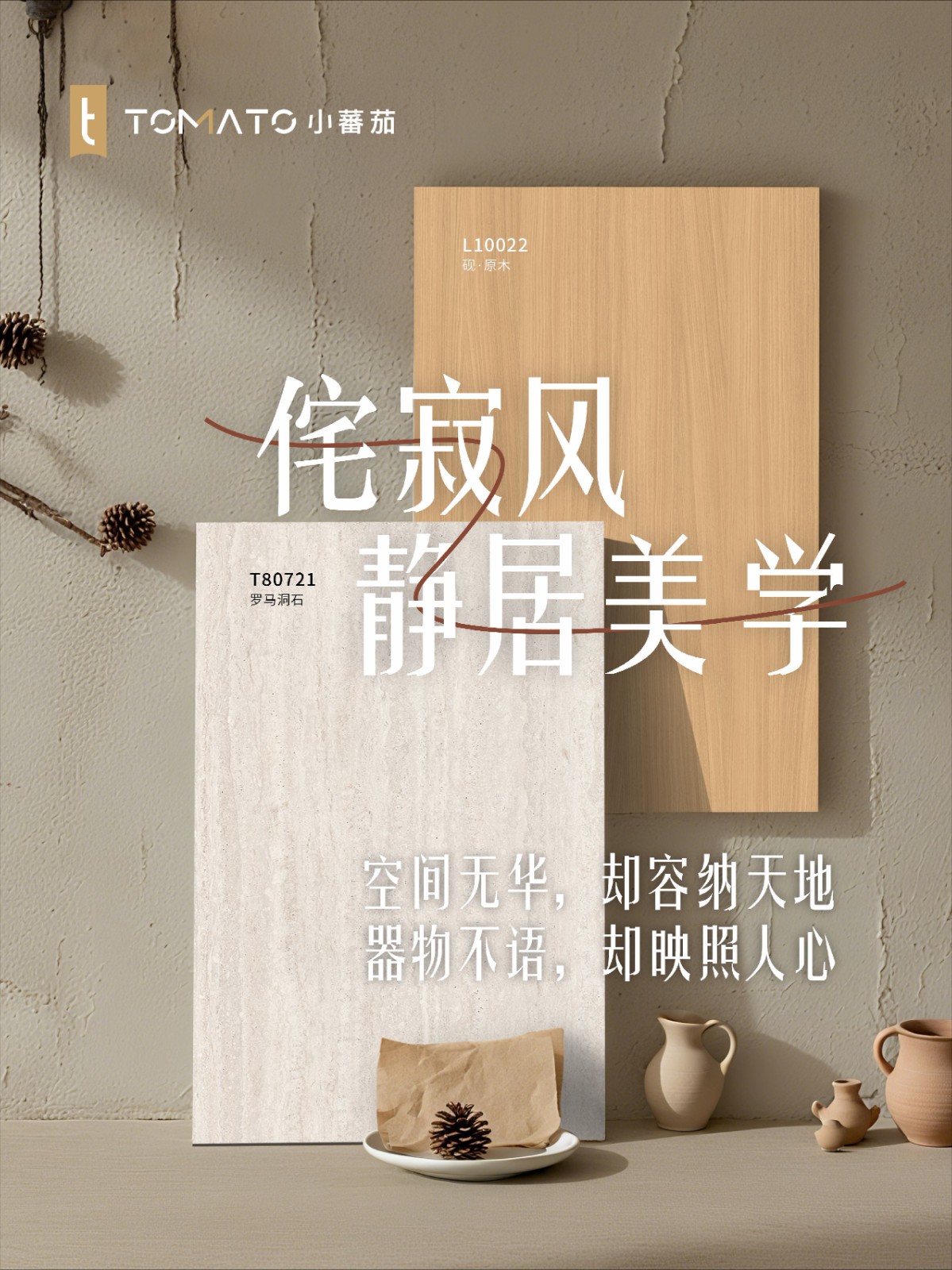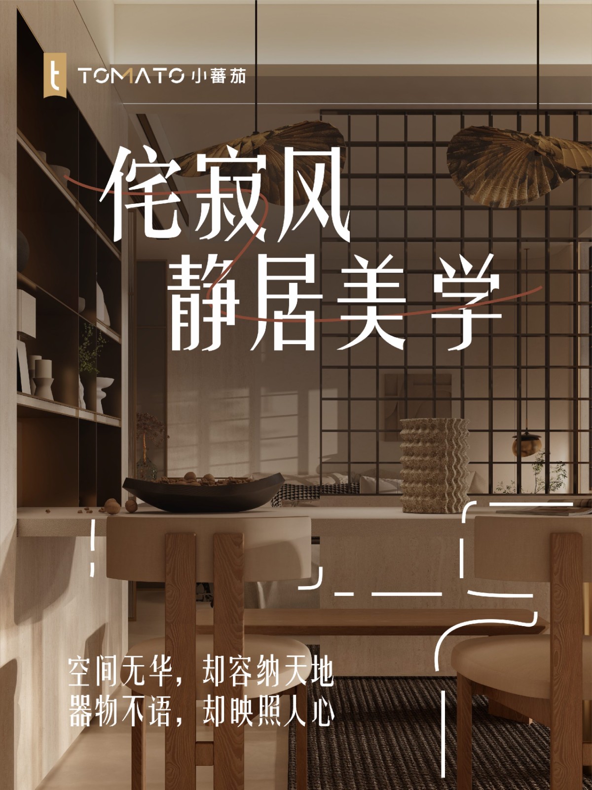 取日式的「静」与「素」,在“原始本真”的主题下让物与空间回归最初的纯粹状态,成为心灵的栖息地。 日式的静与素,带着向内凝视的克制,剥离一切繁杂的诚实,以朴实的原始形态,展现物的灵魂。 ——手作粗陶的斑驳、风化洞石的肌理、结疤木质的年轮,这些在岁月慢火下煨出来的不完美材质,在褪色与磨损中沉淀出独特的美感,呈现「随形」之美;而在凹凸处又藏着光阴的故事与时间的厚度,恰又是最有温度的生命叙事。 静居其间,人与物皆褪去浮华,回到更清澈、更真实的自己。